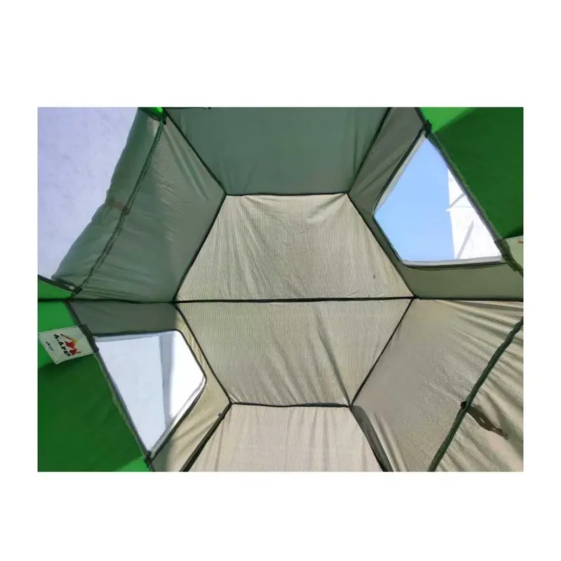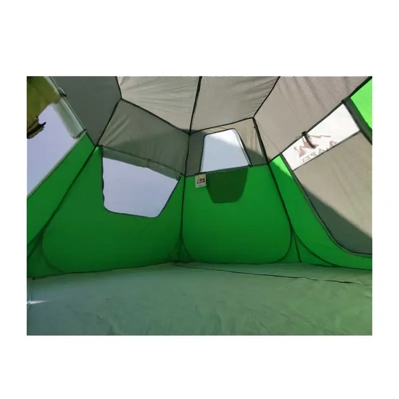 چادر ششدیواره گزینهای مناسب برای طبیعتگردی و کمپینگ است. ظرفیت این چادر ۱۲ نفر بوده و از جنس برنو ضدآب ساخته شده است. چادر دارای دو در، دو پنجره بزرگ و دو هواکش بوده و همچنین دو جیب داخلی و بند آویز سقف دارد. در بخش پنجرهها و درها از توری حریر درجهیک استفاده شده است. کف چادر ضخیم و ضدآب طراحی شده و به همراه یک سایهبان و کیف ست همرنگ عرضه میشود. ابعاد کف چادر ۳۵۰×۳۵۰ سانتیمتر و ارتفاع آن ۲۱۰ سانتیمتر است.
